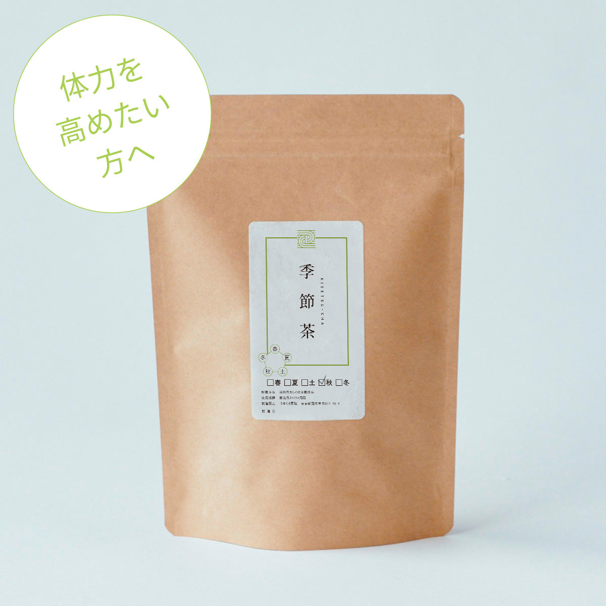 季節茶(秋茶)とは中医学の基本の考え方である「陰陽五行説」に基づいて、季節の悩みに合わせた成分配合をしている「自整茶(本来体が持つ整える力を高めるお茶)」です。